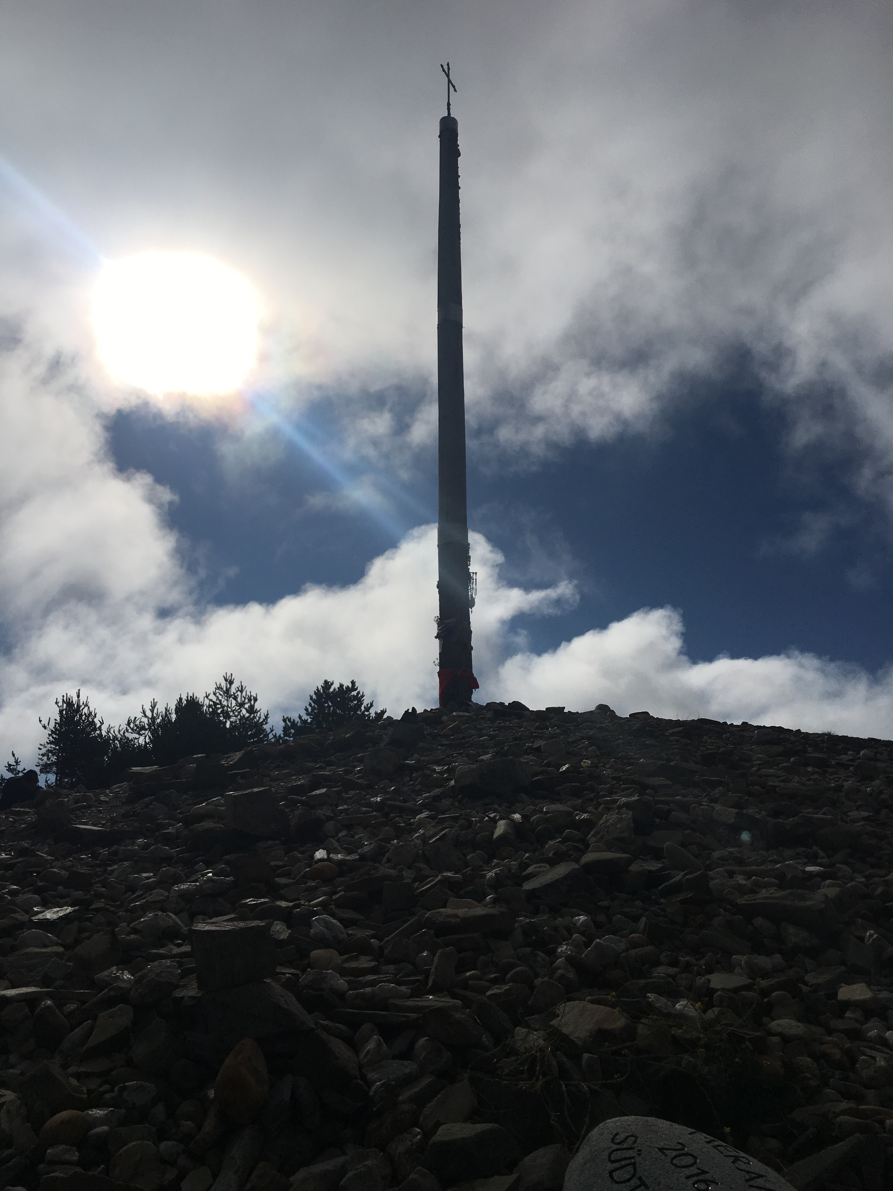 Today was the day to climb the highest mountain on the Camino de Francés, 1504 meters (4,934 ft.) above sea level, a steady hike to Cruz de Ferro, the replica iron cross that sits on a five meter high wooden pole. It’s surrounded by a pile of stones and rocks that Pilgrims leave for different reasons. It’s very personal; some people are quiet and reverent, while others love the idea and a photo. According to Leslie Gilmore’s guidebook, this Iron Cross was part of a pagan ritual and predates Christianity. So I felt comfortable participating in this cultural tradition.