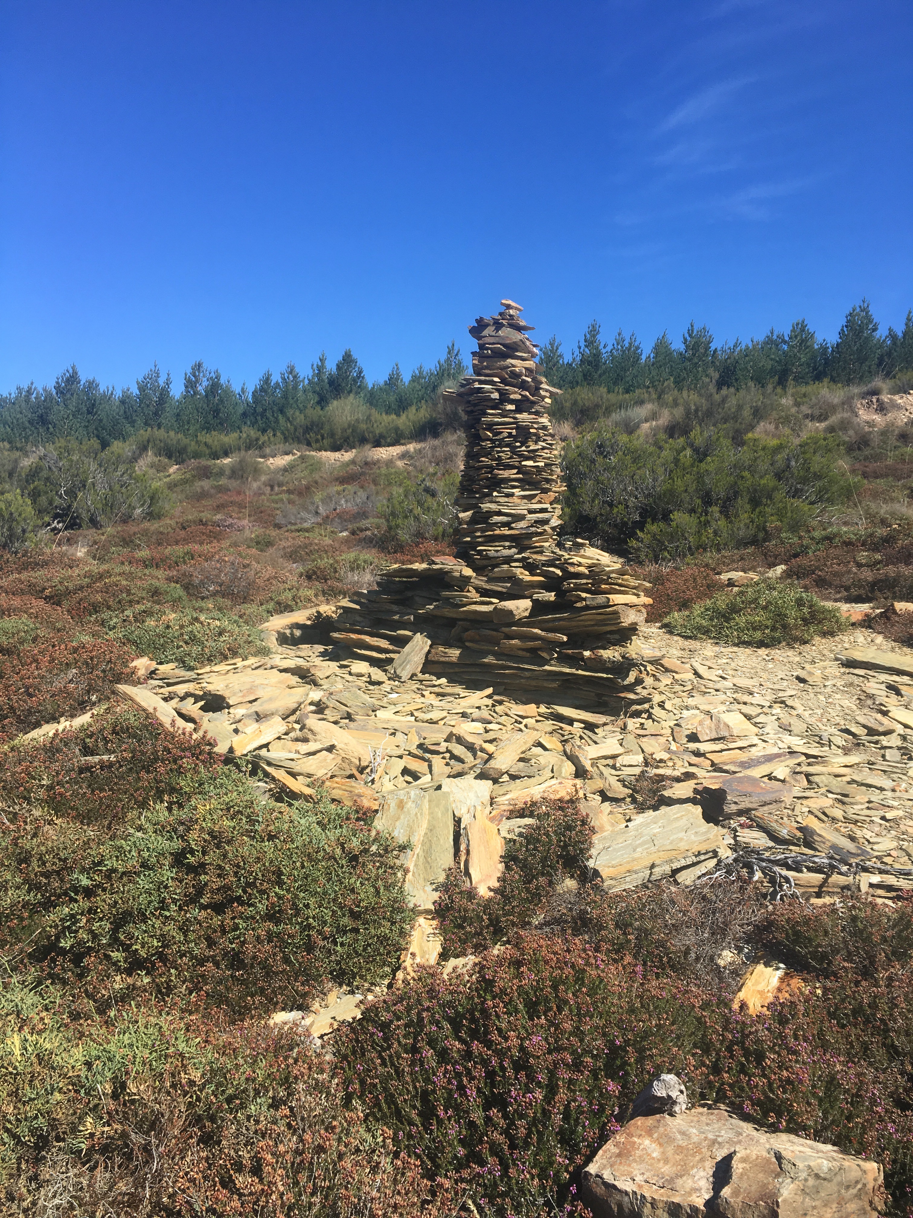 I placed my stones and said a prayer, looked around the park area, checked out the unique sundial and then walked on many more kilometers of the rocky, steep downhill path to El Acebo to find a bed for the night. I felt lighter and at peace within myself, and I chanced to be hopeful for our world, Beyond Borders on the Camino.