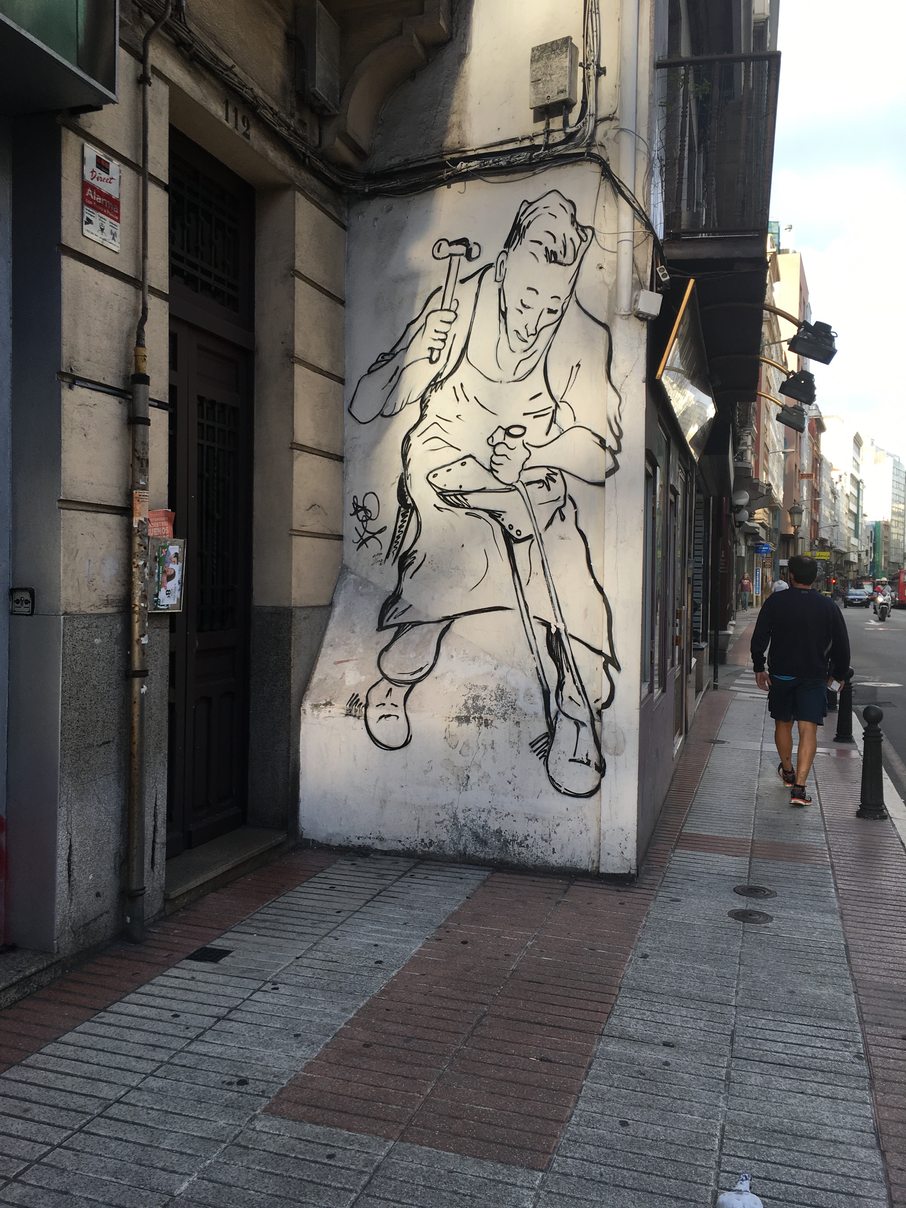 I’ve experienced different challenges than on the Camino. The first two days I was disoriented by the weekend crowds, everyone seemed to be part of a couple or family and I was alone. I wasn’t sure what tapas to order or how to eat them. Fork and knife? Finger food? When are cafes and tapa bars open? Who takes a siesta and who works? My elementary Español that worked on the Camino, isn’t quite right for Galician in A Coruña. I know these are minor, but it took me a day or two to feel comfortable eating alone in a crowd, asking for ice for my ankle, even joking with strangers, trusting that perfection wasn’t needed.