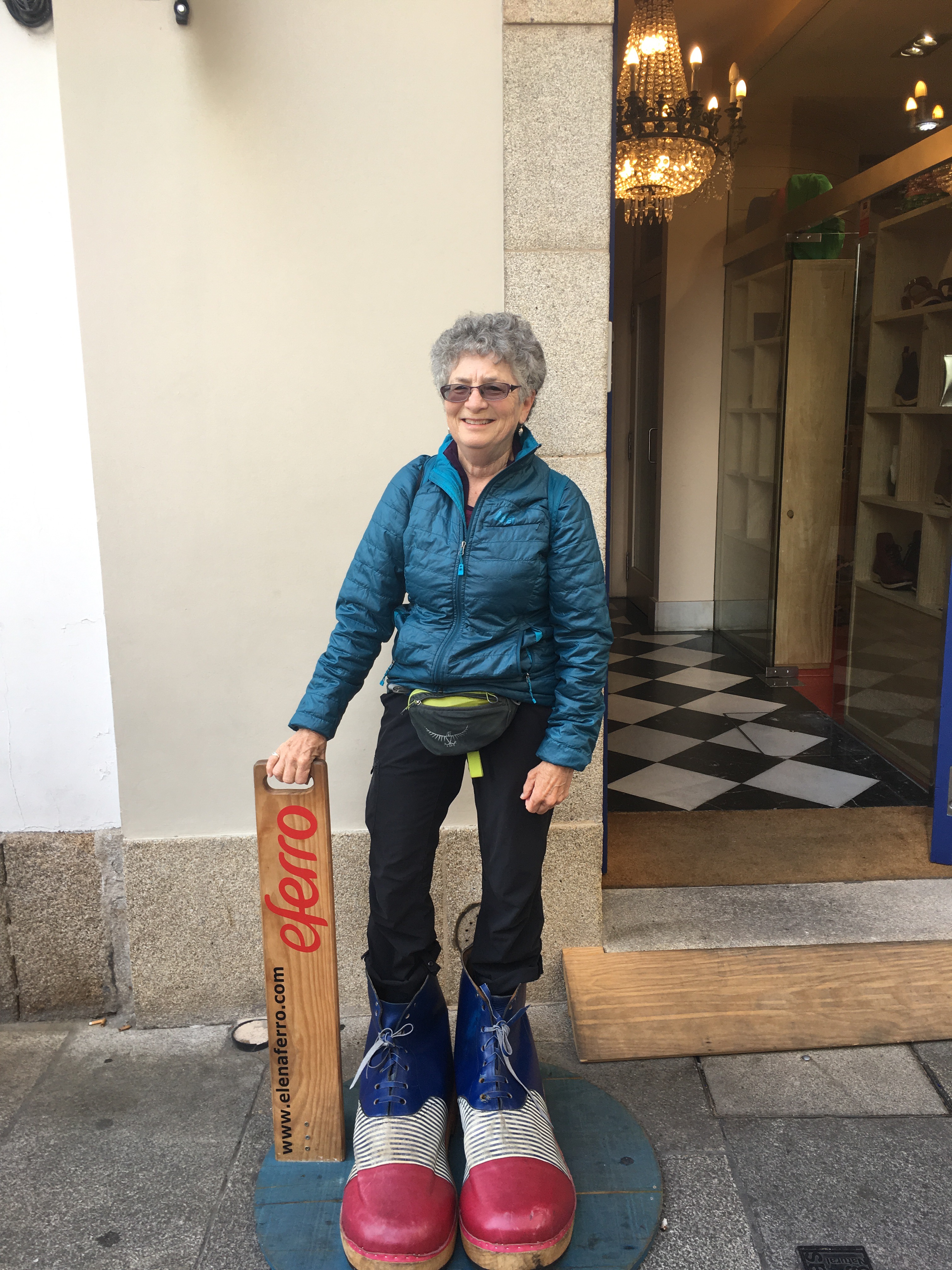 I watched A family taking turns standing in these boots in front of a zapateria and they offered to photograph me. We all laughed together. These might be just what I need on the Camino.