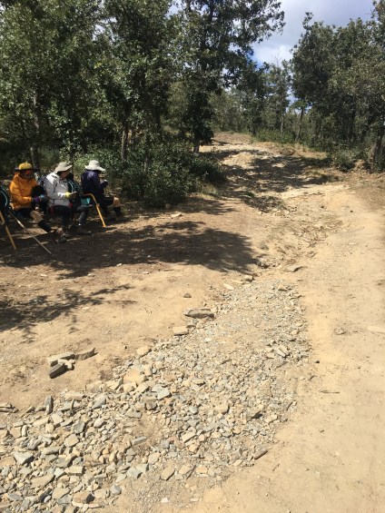 Later a real rest stop and then the way was rocky and hilly, with some back road walking, occasional cars and finally. . . .
