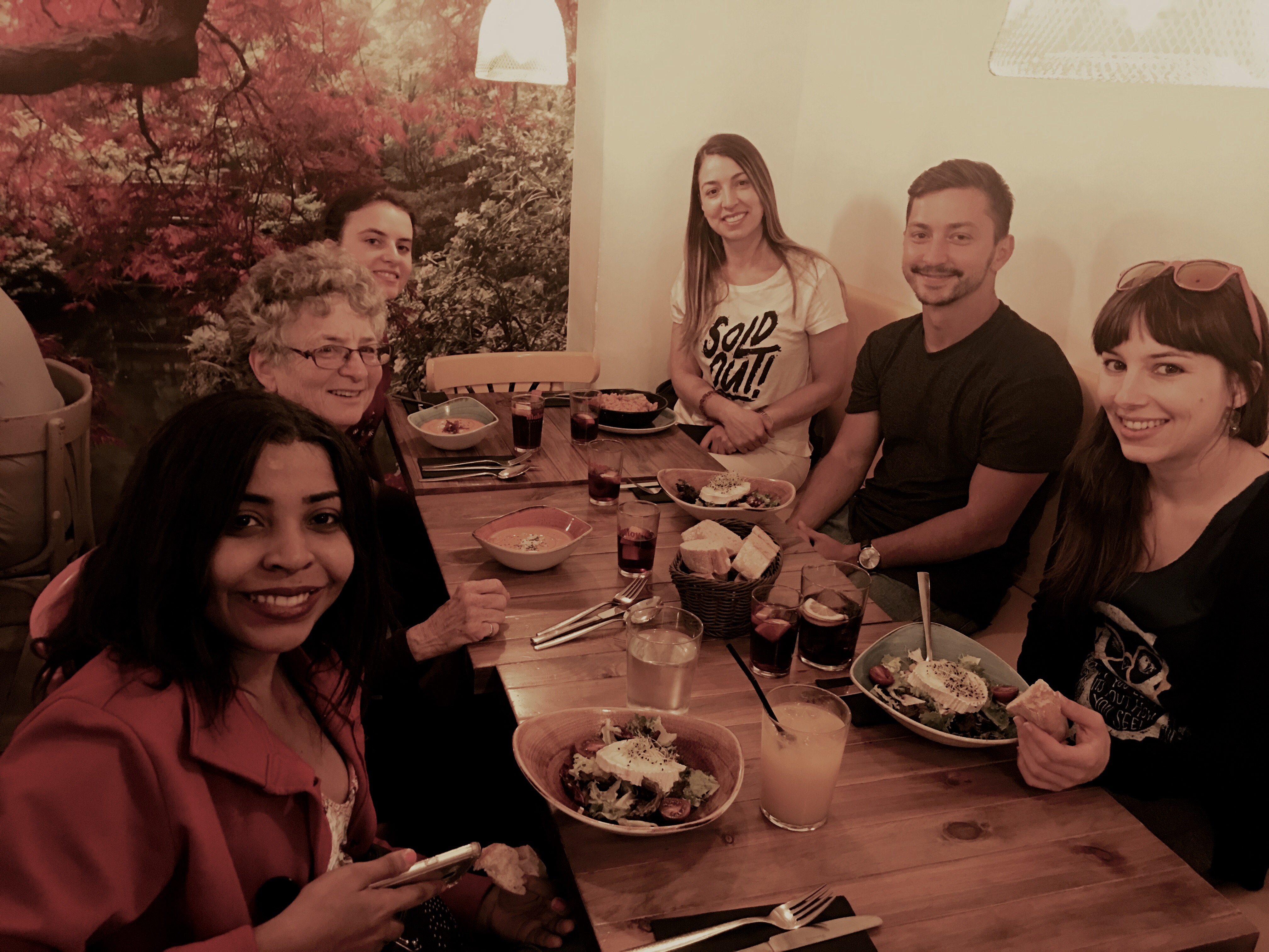 At the end of our 2017 tour, after a group picture, several of us went to lunch for a Menu Del Dia, equivalent to a Pilgrim’s menu, but in a trendy restaurant, Rosi La Loca. From this shared tour and lunch, I met many new friends. Around the table, Brazil, USA, Romania, Argentina, Switzerland and U.K.