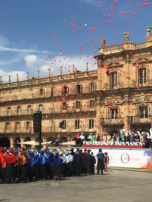 Dignitaries included doctorates and professors from around the world and alumni and students. And. . . I heard the King and Queen of Spain were also there. What a gathering in the magnificent Plaza Mayor.