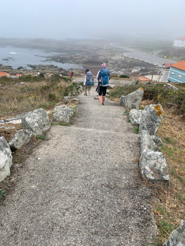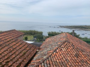 Ocean from my window, overlooking the narrow lane and the wild Atlantic. Stone buildings, visitors, Pilgrims and tourists. What is the difference? My question from the beginning in Porto.