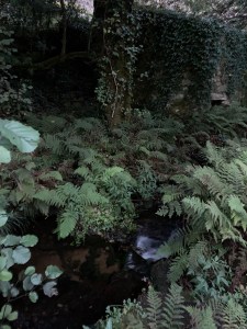 Next morning everyone was up early because of snoring. It’s funny, right? Maybe. It was 5:00 and at least ten pilgrims were waiting for even a hint of daylight. Sunrise was 8:30. Pilgrims often leave in the dark, but this route needs light for safety and to see the stones and water on Ruta da Piedra e da Agua. A few people smoked on the patio. Finally two or three at a time left with headlamps bright. I wasn’t planning to walk in the shaded woods in the dark. And at that time I thought I was walking alone.
